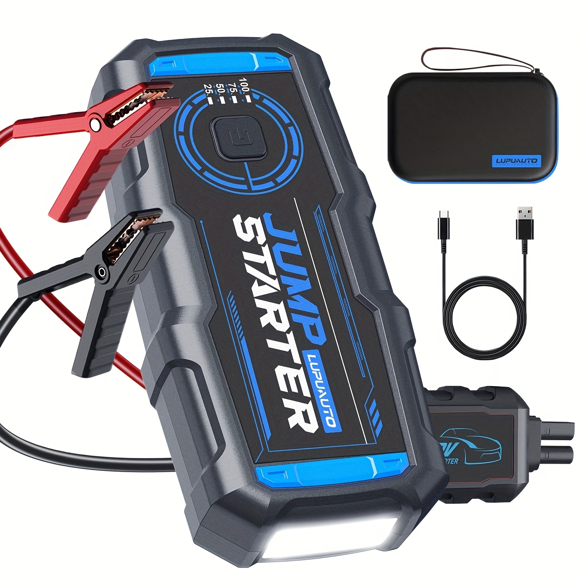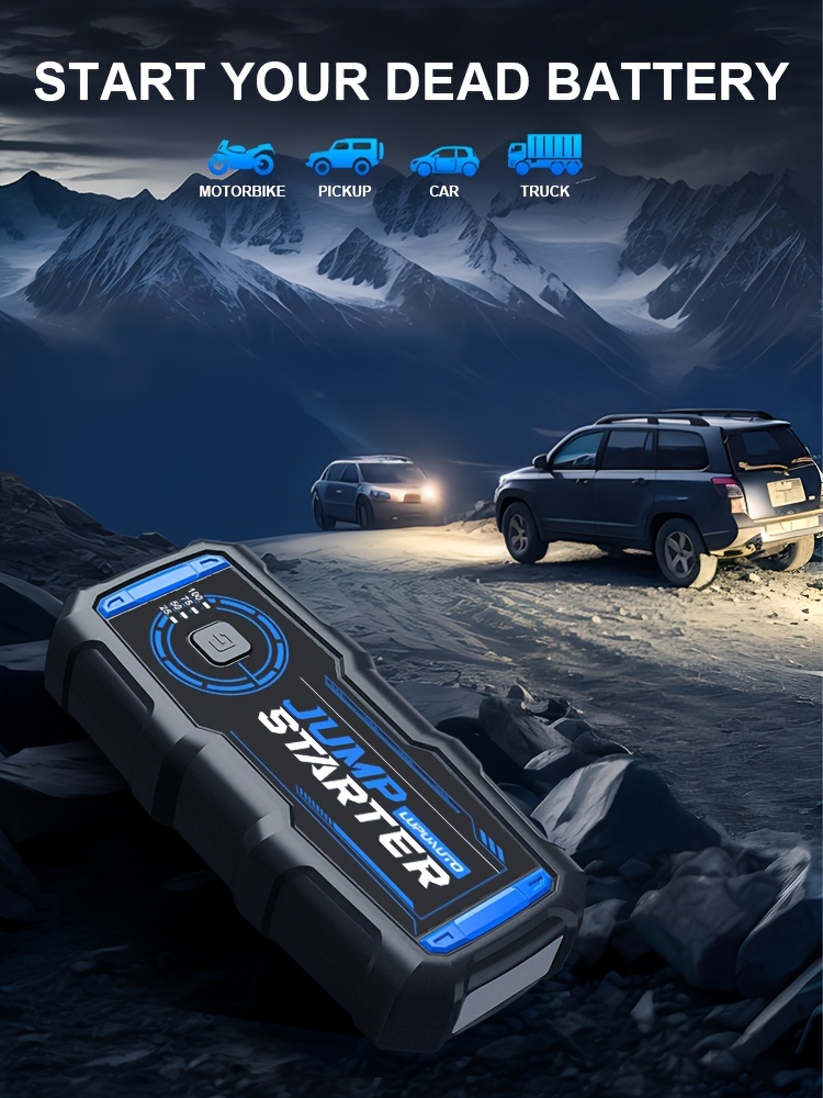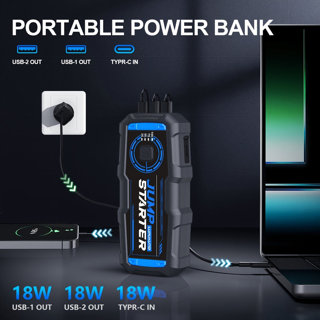 12V Portable Car Jump Starter 2500A Peak Battery Jumper Starter Jump Box for Car Battery, for Gas & Diesel Cars with USB Charge Ports & LED Flashlight, Car Battery Charger Jump Starter, Vehicle Power Supply, Roadside Assistance Tool, Lightweight Jumper, C