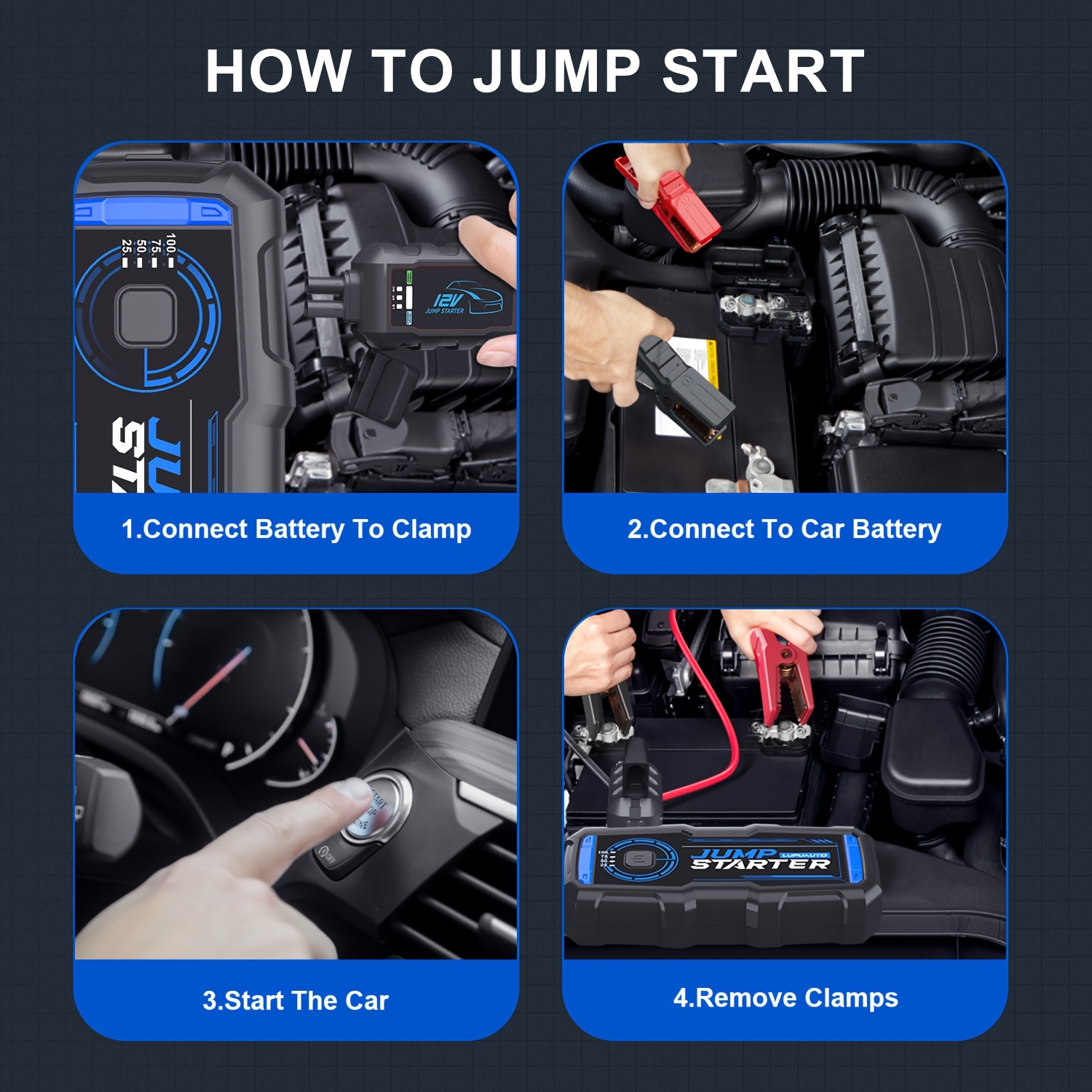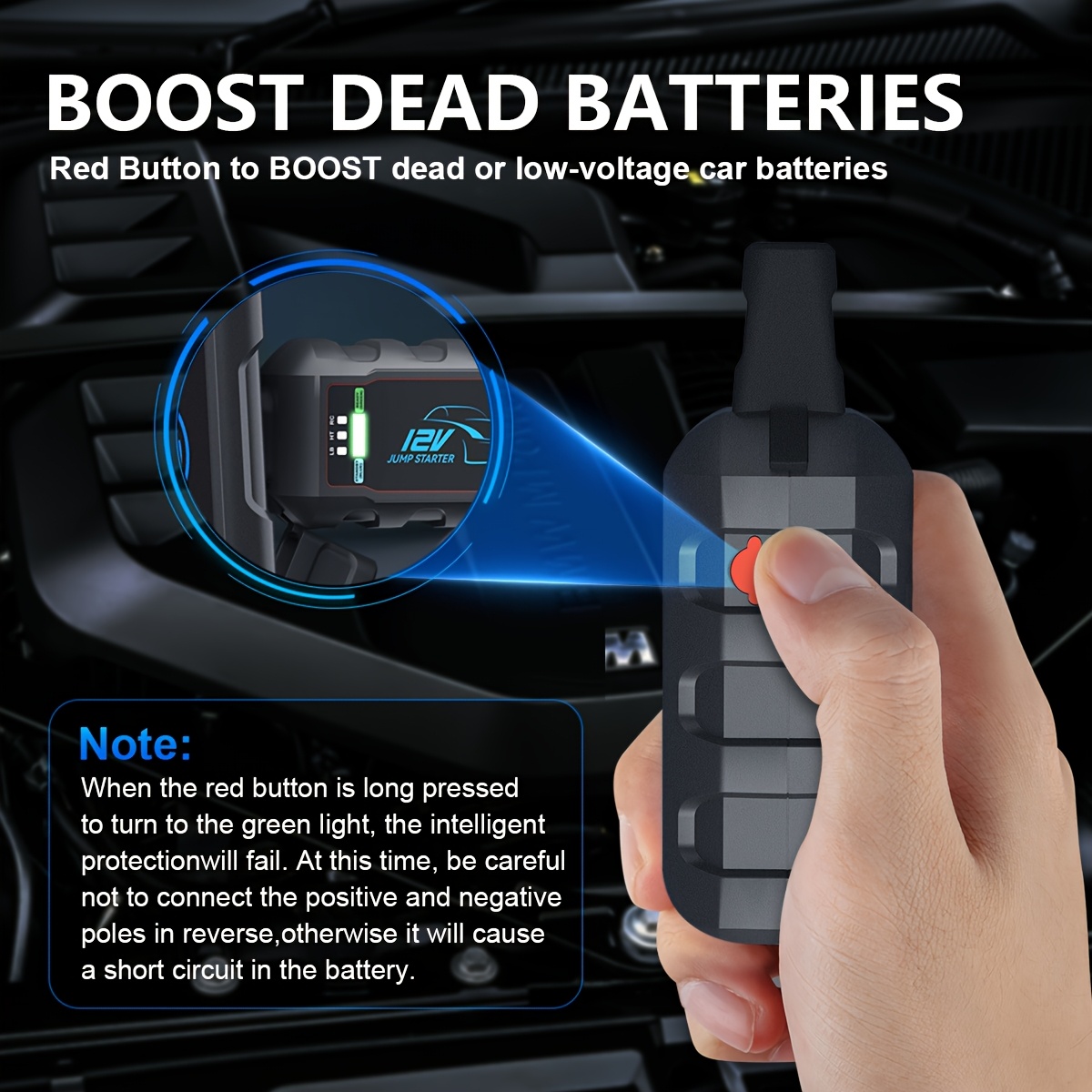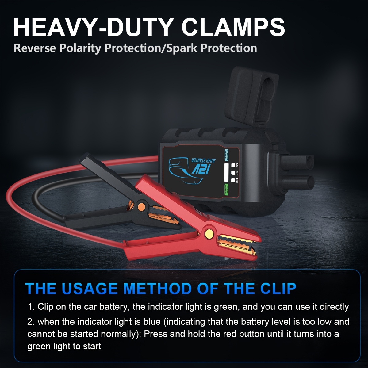 12V Portable Car Jump Starter 2500A Peak Battery Jumper Starter Jump Box for Car Battery, for Gas & Diesel Cars with USB Charge Ports & LED Flashlight, Car Battery Charger Jump Starter, Vehicle Power Supply, Roadside Assistance Tool, Lightweight Jumper, C
