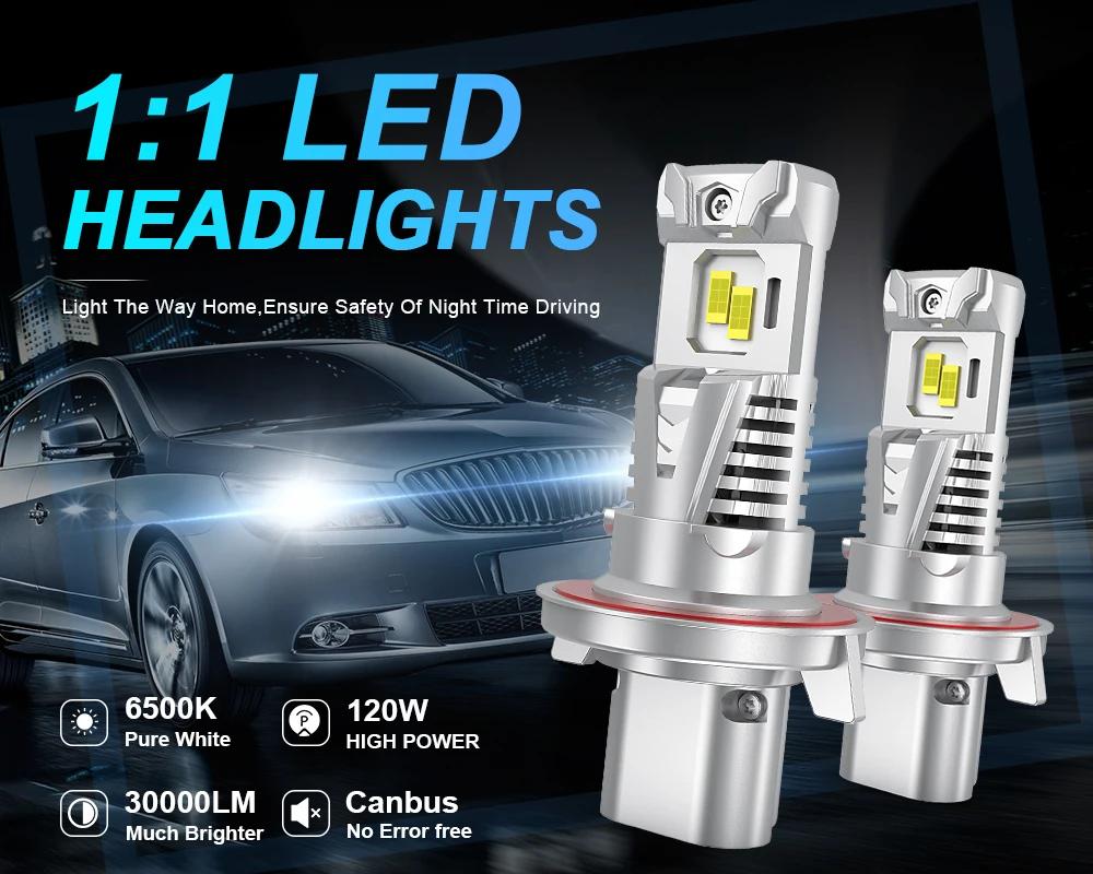 2pcs 9008 H13 LED Bulb Car LED Headlight Bulb CSP Fanless With Canbus High & Low Beam 20000LM 120W Canbus Fog Lights Auto Bulbs