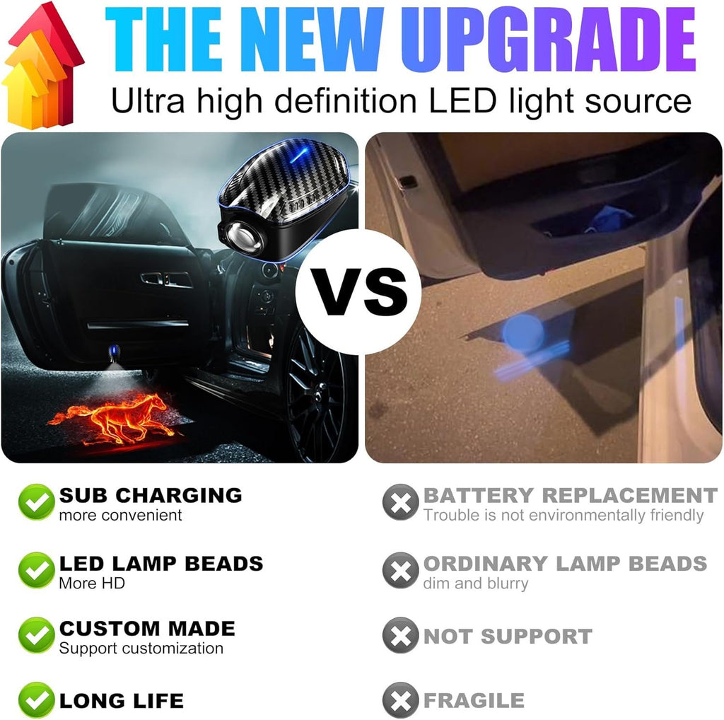 2PCS Custom Car Door Light Projector,Car Door Projector Rechargeable HD Car Welcome Courtesy Ghost Shadow Lamp Fit for All Cars