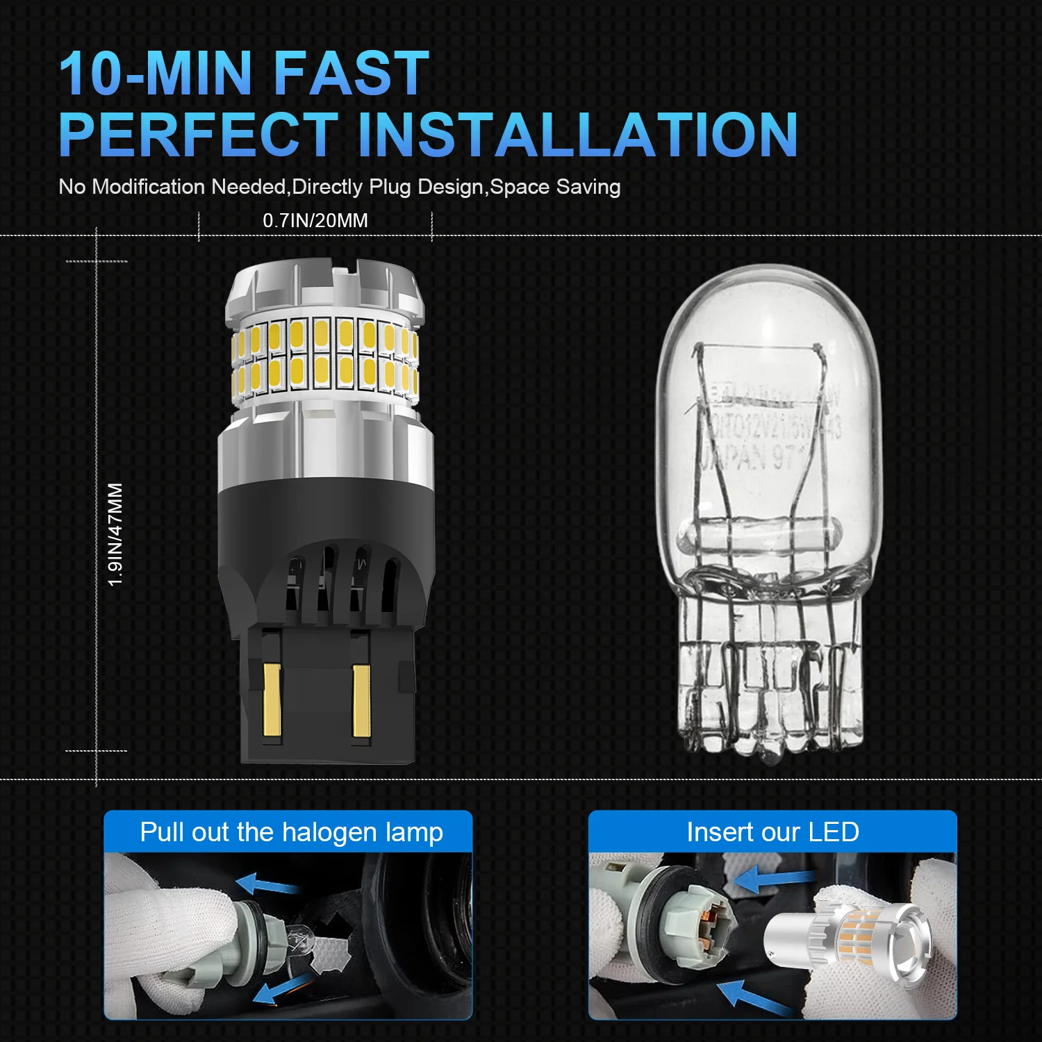 2Pcs T20 LED 7443 W21/5W 7440 W21W LED Bulb 6500K White 12V Car Parking Position Light DRL Daytime Running Lamp