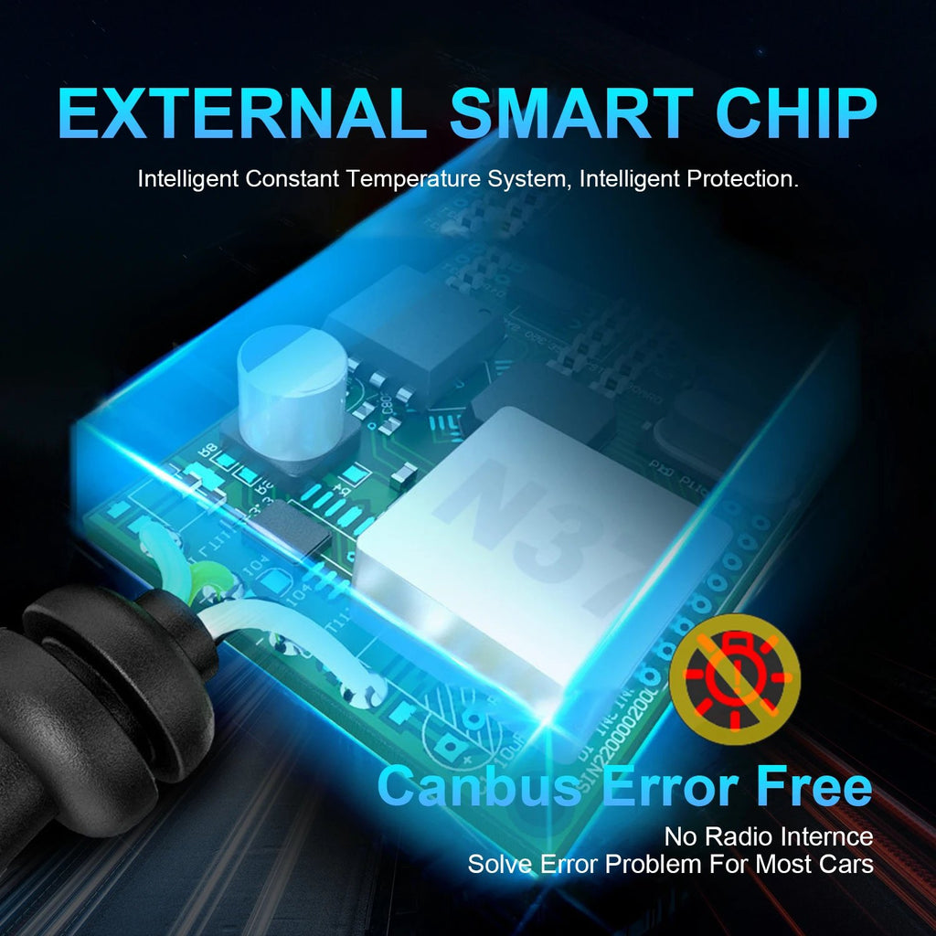 External Driver Chip - External driver separates the power supply and the bulb body, which helps dissipate the heat of the LED light beads, reduces light decay, and extends service life up to 5 years. Note: the external drive is not a decoder. If your car has radio interference, Hyper Flashing,Eliminate Error Codes and other more problem. Please contact our customer service, we will provide Canbus decoder for free.